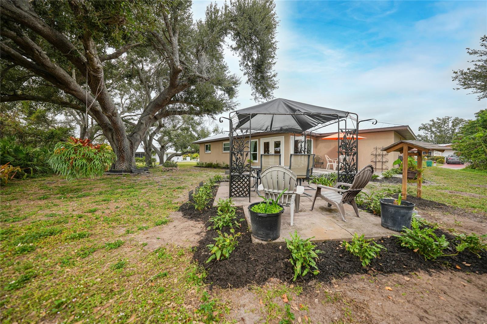 This gorgeously updated single-family home is MOVE-IN READY! Offering 3 bedrooms, 2 bathrooms, and a 2-car garage, this property also features a tropical outdoor paradise perfect for relaxation and entertaining. Step inside to discover an open and split floor plan, complete with a formal dining room and a spacious great room ideal for gatherings. The upgraded kitchen boasts solid wood cabinets, soft-close drawers, granite countertops, new appliances, and a convenient closet pantry. The primary suite impresses with its generous size, walk-in closet, and newly remodeled ensuite bathroom. Both guest bedrooms and the guest bath are situated on the opposite side of the home, providing privacy and comfort. Additional updates include tile flooring throughout, ceiling fans, a new HVAC system (2024), a new septic system (2024), a hot water heater (2024), and a newer metal roof (2022). Interior highlights also feature an interior laundry room, impact windows, crown molding, and much more. Step outside to enjoy the enclosed Florida Room or the outdoor tropical oasis, complete with a paver patio, outdoor gazebo, and beautifully landscaped yard. Whether you're soaking up the sun or entertaining guests, this backyard is sure to impress. Conveniently located near shopping, dining, entertainment, medical facilities, and more, this home truly has it all. Don't miss out on your slice of paradise--schedule your appointment today!